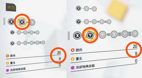 初期连击推荐如图所示,没错,就是这两种连击组合能应对各种情况,第二排可以不用。所以前面虽然说了不少,但其实直接给出最简洁的搭配就好,不过出于专业精神,还是逐一解释一下。==