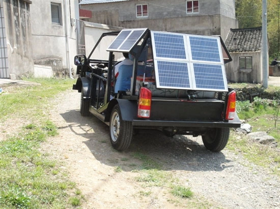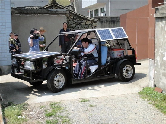 在晴天光照达到4小时的情况下,6只蓄电池充满电后,这辆车能够行驶70公里。要是没有光照,蓄电池还可以通过家用电进行充电。小朱介绍,该车的电机功率为1千瓦,车架是采用方形钢管焊接制作的,整车重量大约400公斤,最高行驶速度能达到40公里每小时。