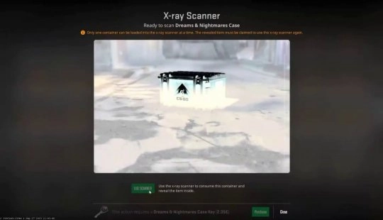 根据玩家与皮肤交易市场透露的信息,X光扫描仪能让玩家透视未开启的武器箱,直接查看箱内即将获取的皮肤。从表面来看,这消除了开箱的随机性——玩家不必再为未知的奖励付费。