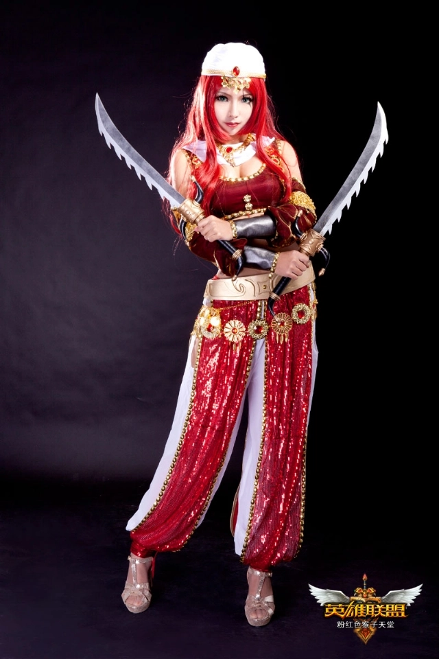 国内高人气COSPLAY团体“粉红色猴子天堂”再次强势推出一组作品,此次呈现的是游戏《英雄联盟》中不祥之刃卡特琳娜沙漠风暴皮肤的精彩COS。