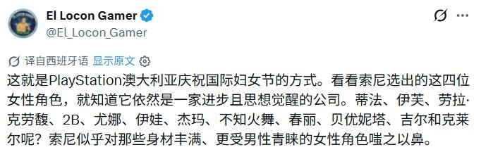 有玩家列出不少与索尼合作、登陆PS平台的游戏里,那些外形出众且深受玩家喜爱的女性角色,质疑明明有这么多拿得出手的角色能用来做贺图,却偏偏选了这些,这不才是对女性的不尊重吗?还有玩家表示,索尼第一方游戏里净是些追求政治正确的角色,大概也就只有这些能拿出来展示了。