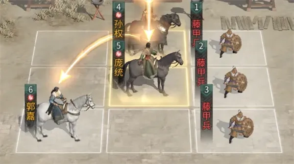 郭嘉不站追击格,庞统站郭嘉的追击格,并与孙权互站追击格。