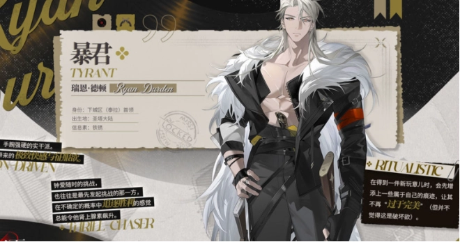 1、外形特征:他的长相粗犷而魁梧,一头白发在昏暗的背景下如同“夜空里的星星般耀眼”。这样独特的外貌设计,既增添了他的神秘感,也让玩家对他的身世背景产生了好奇。