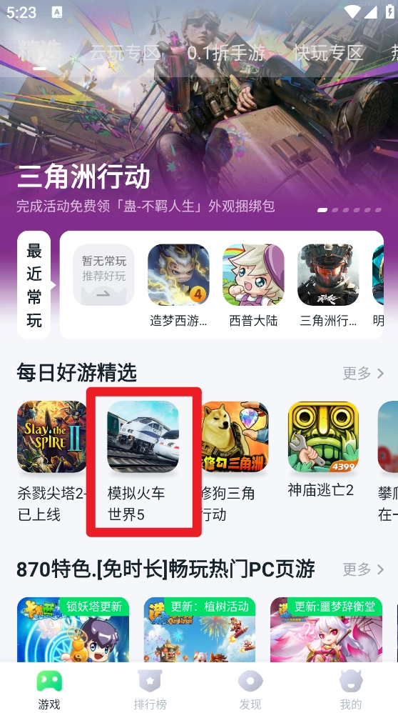2、主页提供各类游戏资源,可任意滑动挑选心仪的游戏。