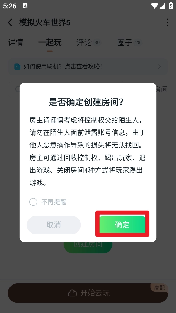 5、一键点击“创建房间”后,会弹出提示框,此时点击“确定”即可。