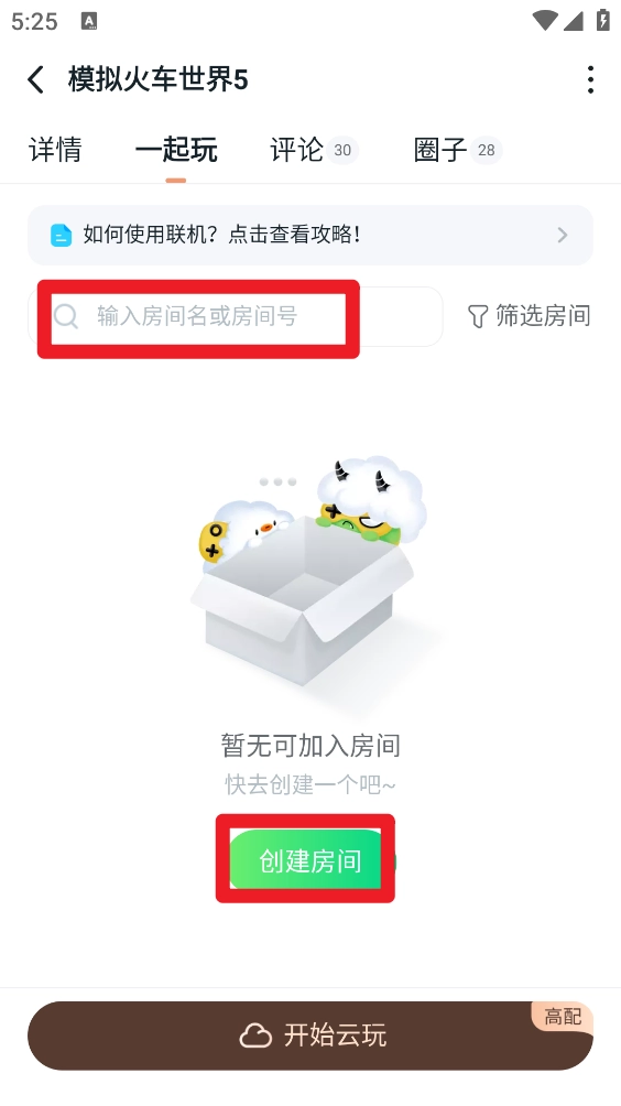 4、如图所示,你可以在其中输入房间名或房间号进行搜索,加入后就能和朋友联机畅玩,也可以选择创建房间。