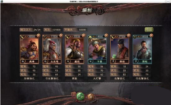 在第二张图的右上角能看到一个【总COST】标识,这是对玩家使用武将的一项限制条件:出击武将的总COST值不得超过24,且部队最多可派出6支。