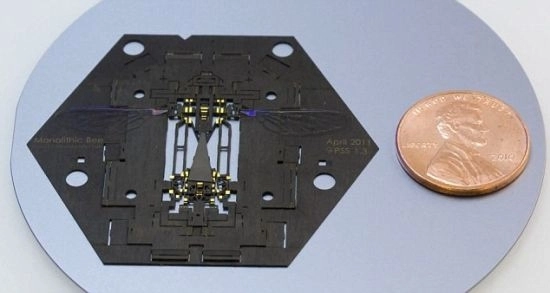 机器昆虫的尺寸与一枚美国二角五分硬币相当,能够从薄片中弹出