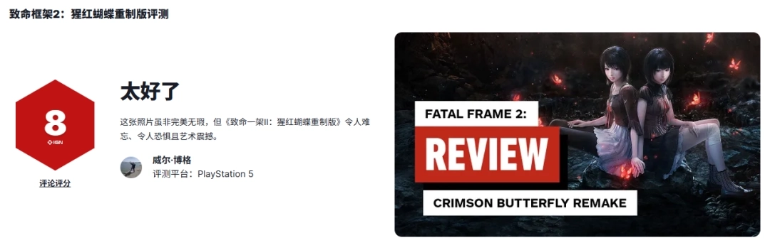 《零红蝶:重制版》确定于3月12日正式推出,首发将登陆PlayStation 5、Xbox Series、Switch 2以及Steam平台。目前该作的媒体评分已经公开,IGN为其打出了8分的好评,并评价道,这款重制版满足了粉丝们的所有期待,不过和大家记忆中的原版相比,还是存在一些差异。