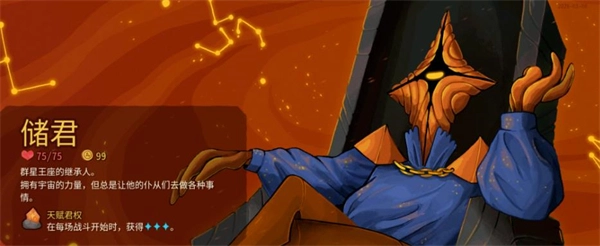 4、储君:作为新加入的职业,储君在成型后强度不低,存在一定上限,但铸剑流派的实际体验较为憋屈,常规选择星阳流即可——毕竟该流派相当于比其他职业多了一整个费用槽,而且过回合时费用不会清空。不过储君前期表现过弱,在高进阶难度下很容易连第一层都无法通过;目前来看,选择星阳流的玩法强度更高,避开铸剑流派能显著提升胜率。