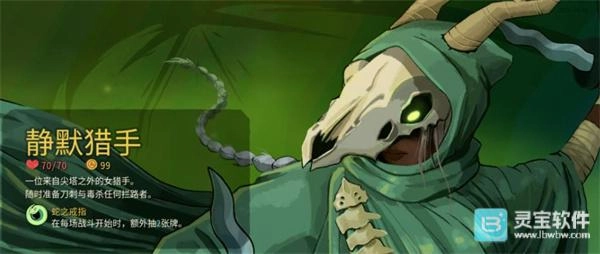2、静默猎手:定位为敏捷型刺客,主打灵活输出。前作经典的毒流、小刀流均已全面重做,新增了大量过牌与爆发卡牌,循环逻辑也得到优化,爽感十足,适合偏爱灵活操作、追求持续输出的玩家。尤其是小刀流,在新加入的刀刃陷阱、刀扇助力下,成型后的一波爆发能扛住的BOSS寥寥无几。此外,毒和弃牌体系的强度同样不低,整体成型后的强度在所有角色中属于一线水准。不过更推荐有一定基础的玩家尝试,主要是因为猎人的过渡成型阶段萌新可能难以把控,很容易在一层和二层折戟。一层的幽灵鳗鱼群和旧日雕像很容易将我们打残,二层精英里有小刀流最忌惮的蜂群术士,后续还有伪装成小怪的猎人杀手伺机而动,这都给成型增加了难度。