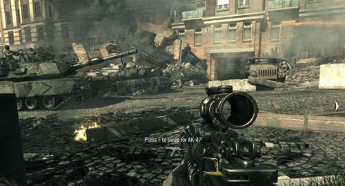 3:抵达目的地后登上坦克,先用重机枪优先解决携带火箭筒的敌人,随后沿路推进。坦克陷入困境后便徒步前行,眼前又是一条漫长的街道;主力作战就依靠友军的坦克,自己则从旁边的房间逐个穿过街道(直接走街道可能会出现莫名报错……),最终抵达副总统被囚禁的大楼。