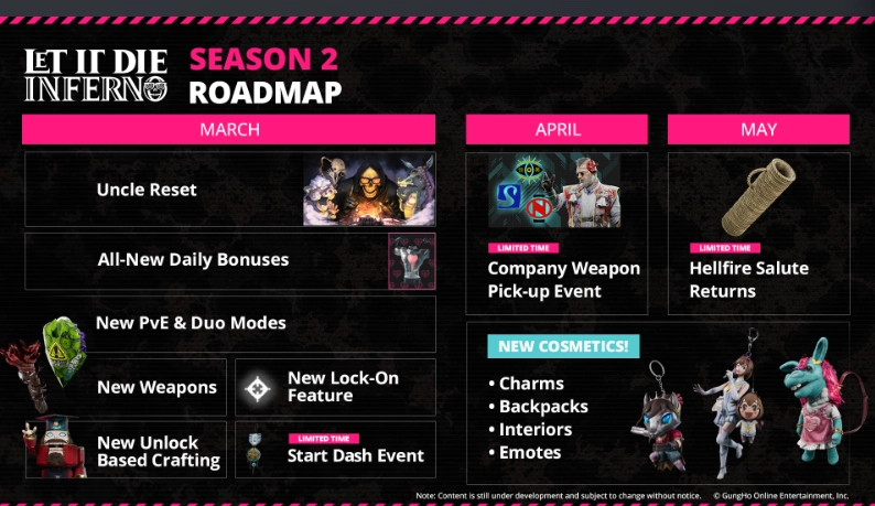 《让它去死:地狱》第二赛季更新的主要变动如下: