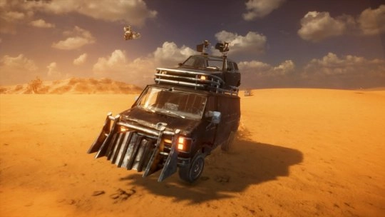 这是一款以《疯狂麦克斯》电影里的车队战斗为核心主题的游戏,不过它融合了《正当防卫》里的抓钩与翼装飞行系统,能让你在自己的车辆被打得满是弹孔、随时可能爆炸的危急时刻,去抢夺敌人的跑车。游戏里的升级内容好像还包含飞行无人机:要是没有大型悬岩,你可以借助抓钩从无人机上完成跳跃动作。