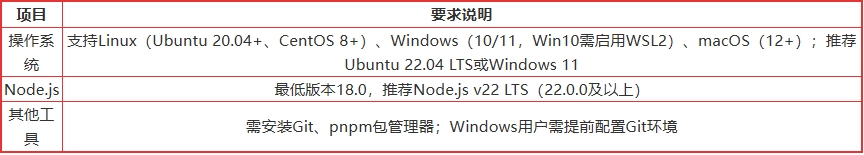 支持的操作系统包括Linux(要求Ubuntu 20.04及以上版本、CentOS 8及以上版本)、Windows(支持10/11系统,其中Win10需启用WSL2)以及macOS(12及以上版本)。