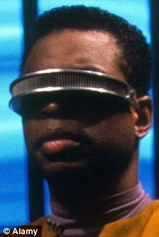 埃米尔-阿米迪博士(左)展示的“感觉替代装置”,外观与影片《星际迷航》里乔迪-拉弗格(右)佩戴的眼罩颇为相似。