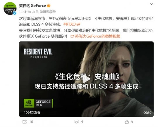 在《生化危机9:安魂曲》正式发售的当天,英伟达英国官方推特在社交媒体平台上发起了一场以《生化危机9》为定制主题的RTX5090显卡抽奖活动。该活动的中奖名额仅为一人。