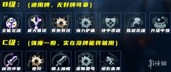 B级(通用牌,无好牌可拿):全能龙魂、最大雪球、有始有终、强力护盾、快中求稳、炼狱龙魂、升级中娅。