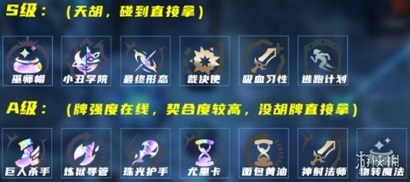 S级(天胡局,遇到直接躺赢):巫师帽、小丑学院、最终形态、裁决使、吸血习性、逃跑计划。