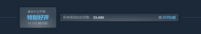 截至目前,Steam全区好评率已攀升至95%,达到“好评如潮”的评价等级;简体中文区的好评率也上升至90%,获得“特别好评”的评价。