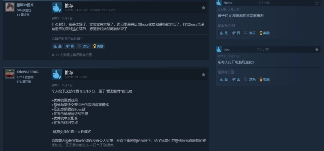 卡普空恐怖系列新作《生化危机9:安魂曲》已正式推出。此前我们曾报道,该作发售首日在Steam国区的评价为“褒贬不一”,其中差评多源于闪退、报错崩溃等技术层面的问题。