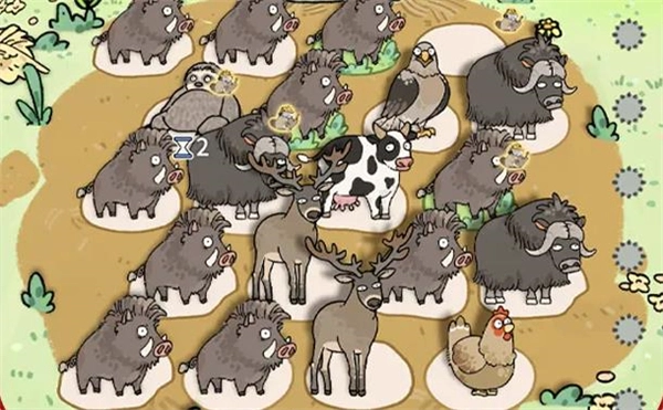 4、玩法思路:野猪集中放置触发“感染”效果,实现快速铺场。中期锁定麝牛来稳固局面,最后以驯鹿等高稀有度有蹄类完成收尾。核心策略在于稳健,避免盲目刷新商店。