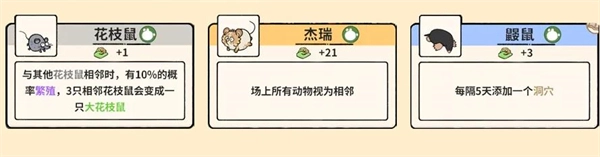 2、核心动物:花枝鼠、杰瑞、鼹鼠。地形建议选择洞穴,因为洞穴能提升单位容量,和鼹鼠搭配使用效果会更好。