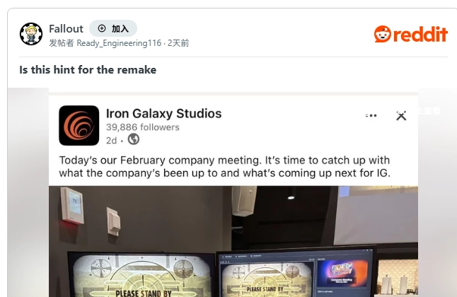 ·工作室本想通过一条短文动态介绍2月的内部会议,会议将围绕工作室未来规划展开讨论,结果发布时配的图片却意外用成了《辐射:新维加斯》的读取画面。