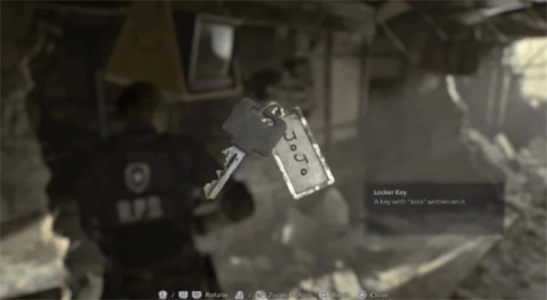 钥匙挂件上刻着“JoJo”。这个名字的由来与初代《生化危机2》里的储物柜设定有关,而且曾被证实是对