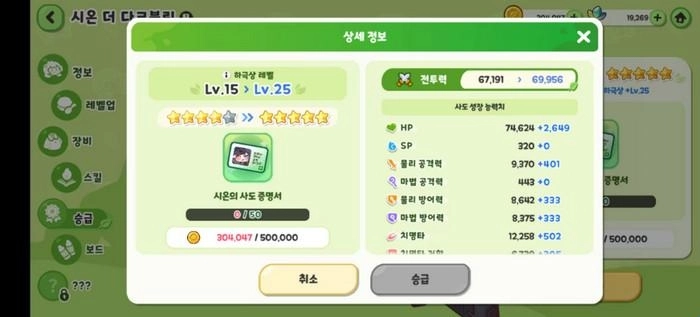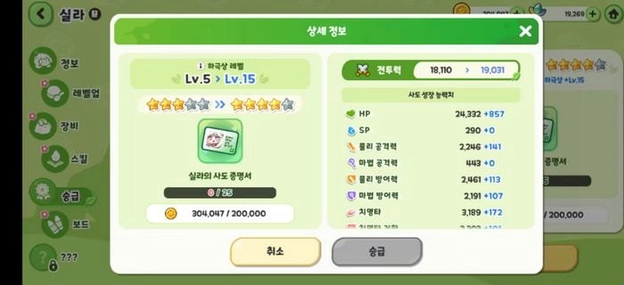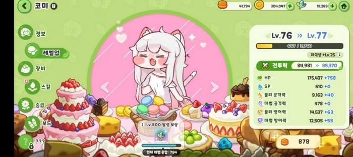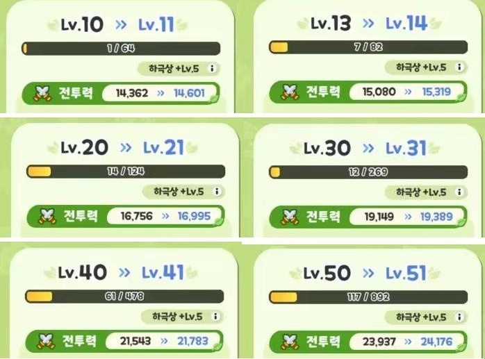 可以看到,不管是76-77级的猫猫,还是16-17级的玩偶,升级一级带来的战力提升幅度都相差不大。由此能够推断,角色升级所增加的数值大致是固定的,并不存在等级越高、升级时获得的数值就越多的情况。这算是提升战力最基础的一种方式了。