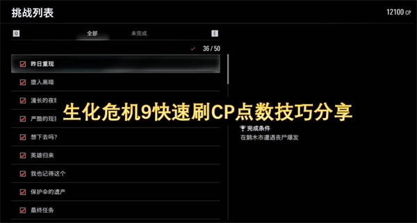※由于本作CP点获取机制设置,目前没有发现非常轻松且无脑的刷CP方法,只能通过完成挑战入手。建议从收集要素等相对容易完成的挑战开始,最终再尝试能获得大量CP点数的更高难度。