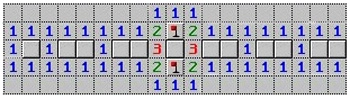 从简单雷区开始尝试吧!下面这张图展示的是一个初级难度的雷区,其中已经标明了两颗地雷的位置,你能否把剩余的地雷都探测出来呢?