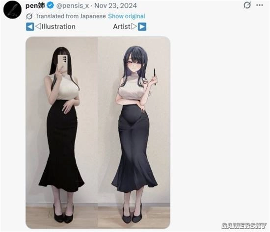 事件的起因大致是日本知名画师pen姉(她是大画师Yoru的小号,账号为@pensis_x),她创作的角色身材比例堪称教科书级别——腰肢纤细、曲线傲人,姿势也自然又鲜活。