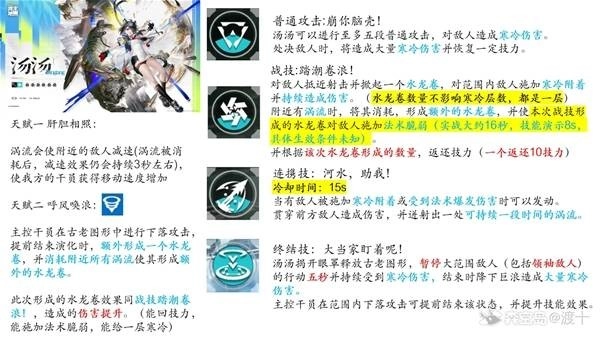这个返还数值结合两位B站UP主的猜想,一种是每个水龙卷返还10点技力,另一种是消耗一个涡流返还20点技力。总体来看,如果按照“一战技+两连携+大招免费战技”的释放顺序,总计能返还40技力并上两层冰,换算下来约为80技力对应一层冰,评价属于中等水平,略逊于别礼和昼雪组合的70技力一层冰,但对比伊冯单C队仅靠塞希上冰的情况,会强上一些。