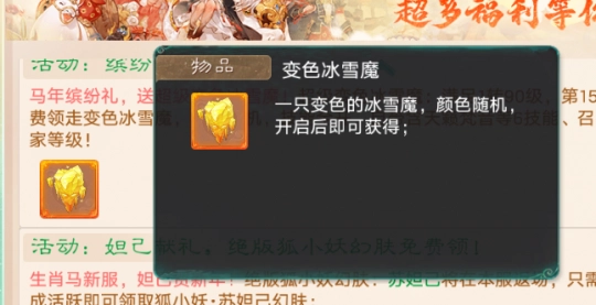 变色冰雪魔的价值有多高,想必不用我再强调了吧?交易服里几乎每个玩家都有一只,而且还能摆摊出售。只要登录满15天,并且达到1转90级的条件,就能把这只变色冰雪魔领回家——它不仅技能全部解锁,还自带天籁梵音等6个实用技能,这福利可比摩托车香多了,必须果断拿下!
