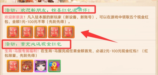 入驻生肖马新服的玩家,在游戏里能领到五个现金红包,叶子猪前两天已经帮大家测试过了,确实真实有效,我自己也已经领过了。只要在马服进行任意首充,还必定返还2元到100元的现金红包,就算是蚊子腿再小那也是肉,有红包可领为什么不拿呢?
