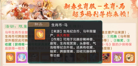 生肖马服务器的各位兄弟,只要等级达到60级及以上,就能领取永久的生肖马观赏宠。如果你的属相是马,今年正好是本命年,并且完成了生肖“马”的认证,那么在本服还能获得永久的专属生肖马称谓哦~