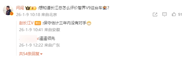 在评论区回应博主“怎么评价智界V9这台车”的提问时,赵长江更是信心十足地说道:保守估计,这款车三年内难寻对手!