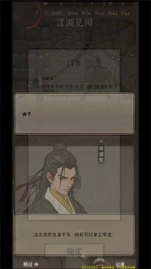 8、巳正时刻:密林里有个《迷雾重重》的事件,要是进去拔剑能拿到一把承影剑,不过目前看这剑不够强力,不太值得费力去拿。镇口有个叫小三子的人,和他比拼两次轻身功夫,要是选“这秘籍有问题”,只能得到一本普通的身法秘籍;选“看来这是一本轻功秘籍”的话,会拿到一本湿透的书。把这本湿透的书拿给客栈里的剑客看,对方会给一本叫《纵影步》的轻功秘籍(就是之前神秘人卖的那本)。不过当前版本我建议这些都不用去做,这个时辰先去镇外的空地,把檀香卖给焦急的香客,能赚450两银子,还能得到一本剑法秘籍。之后去清泉寺上香,有几个选项:选“身体康健”能加0.6外劲;选“心想事成”能加幸运,之后还会捡到150两;选“有个好姻缘”能加0.6管理,另外不管选哪个都会统一加0.6内劲。我推荐选“身体康健”,因为幸运值的经验还是比较好刷的。处理完这些就到下个时辰了。