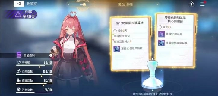 还有一种名为“研究笔记”的奖励,它会替代政策点数奖励,而幸福度、行政指数等属性的成长则不受影响,依然正常进行。