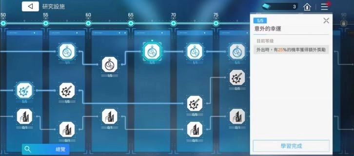 科技升级需要积累点数,就像我们从71级升到75级,得点4个点数。这种情况下,如果点后面的等级,需要4乘以4也就是16个研究笔记,这时候我们可以考虑先点前面的等级,只需要2乘以4也就是8个研究笔记。总的来说,优先解锁上面这四个科技肯定是没错的。