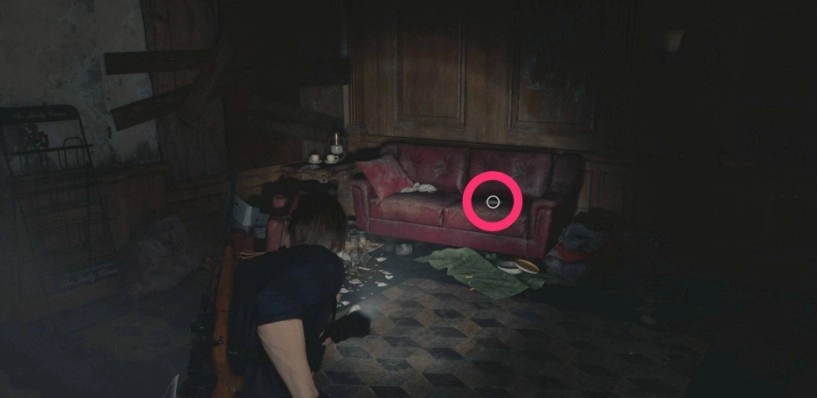 它坐落在进入浣熊市东部后不久就能抵达的苹果门酒店里,具体位置是在那张红色沙发上。