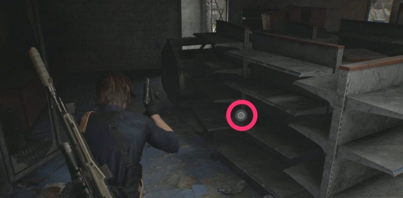 在地图右上角的加油站里,目标物品放在货架上。要进入这个加油站,得先推进浣熊市东部的主线剧情,等地下停车场出口通上电之后才能进去。