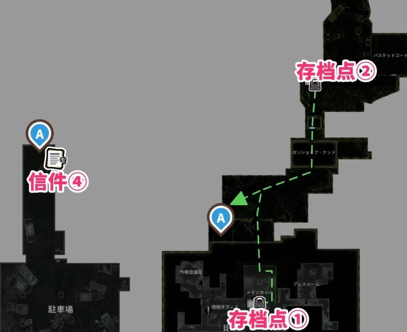 位于肯多枪械店前方靠近存档点的位置。在存档点附近能看到报废车辆,信件就在那辆车里。
