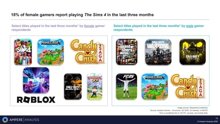 分析机构Ampere Analysis指出,游戏行业对女性受众的增长潜力估计不足,从而错过了市场拓展的契机。该机构的数据表明,女性在全球玩家群体中占比达48%,在21个国家里约有9.22亿人,不过与男性玩家相比仍少了9300万。Ampere认为,若行业能更主动地关注女性需求,这一数量差距有望得到缩小。