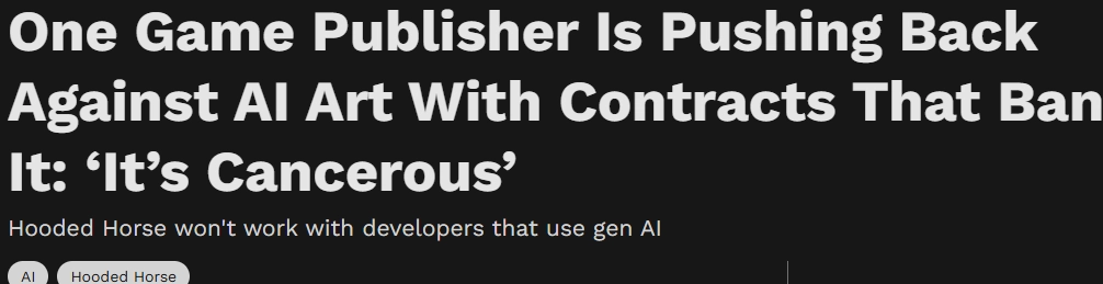 关于AI参与游戏开发,当下不少游戏厂商已表达了明确立场,其中包括SE等企业持欢迎支持态度,不过也有坚决反对的声音。近日,知名游戏发行商Hooded Horse的CEO在接受采访时称,公司绝对排斥AI技术,并会在与开发商签订的合约中加入相关明文条款。