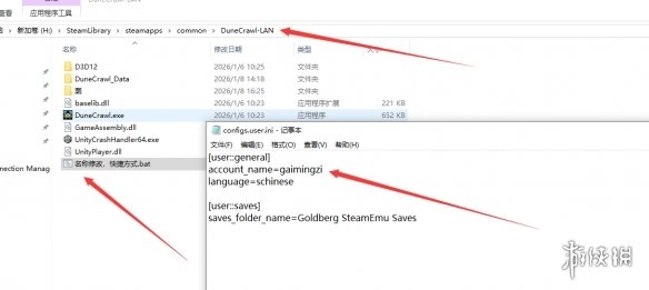 在游戏目录里找到“名称修改,快捷方式.bat”文件,双击将其打开。接着在文件内容中定位到“account_name=gaimingzi”这一行,把等号后面的“gaimingzi”替换成你自己喜欢的名字,最后保存修改即可。