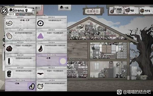 左箭头用于切换到年龄更小的排序,右箭头则是切换到年龄更大的排序。培养房的舒适度保持在15左右、刺激度10左右我觉得就差不多了,健康值自然是越高越好,只要舒适度不低于负数,避免猫咪打架就行。变异房的话,除了刺激度之外其他属性都需要兼顾,比如我的变异房参数是40舒适、-12刺激、5健康、12变异。
