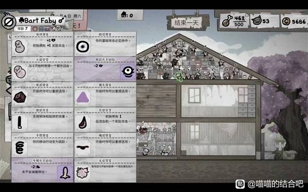 猫咪培育房不能有任何变异值,否则会让负面变异对养猫产生正面影响。两个近亲猫咪交配,负面变异几乎必然会遗传。你可以把负面先天缺陷当作可刷新的词条,而正面词条则视为锁定词条。比如,我已经有能稳定繁殖出D6尾巴、眉毛和嘴巴这三个特征的猫咪,现在想培育出双头或身体变异的猫咪,就把有头部先天缺陷和身体先天缺陷的父母放在一起交配,这样生出的小猫大概率会同时带有头部和身体的先天缺陷,然后把这些小猫放到变异房去刷新词条。不用等变异值到10再查看,你可以逐个筛选变异的头部和身体部位,如果它们已经变成正面变异但都不是你想要的,就直接淘汰,直到刷出你想要的部位为止。