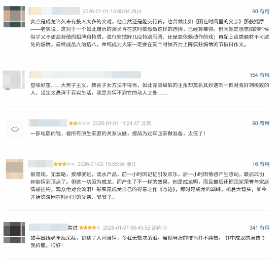 不少观众被成龙的演技深深触动。有观点认为,这部作品是成龙近年来难得投入大量心血的文戏,他塑造的患病老人形象,很容易让人联想到奥斯卡经典影片《困在时间里的父亲》。